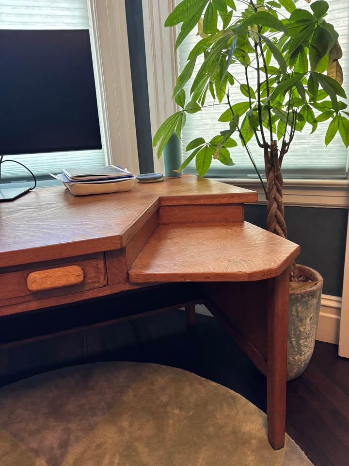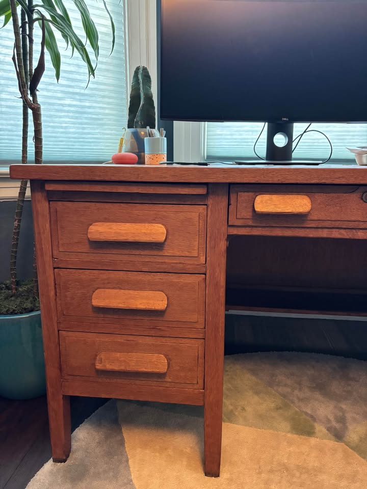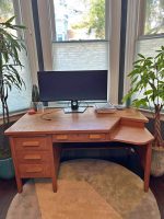 Beautiful wooden desk with unique design. Great condition for an old vintage piece.