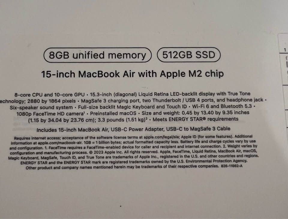 Apple MacBook Air with Apple M2 chip 15” inch laptop