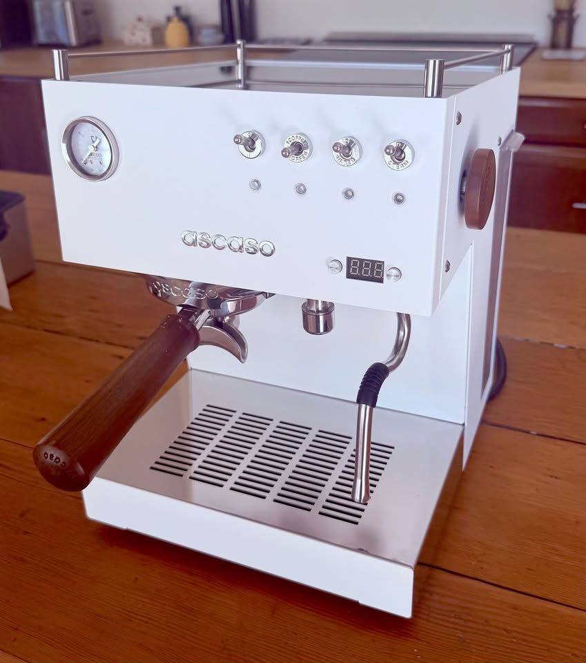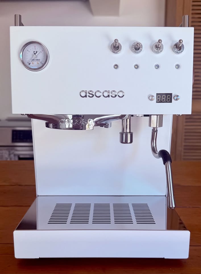 Ascaso Steel DUO Programmable Espresso Machine w/PID Controller, Dual Thermoblock in white. Purchased in 2023 for $1800.00. Works great, no problems at all. Accessories come with machine.