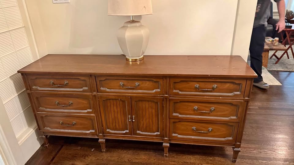 Gorgeous antique dress that would look incredible in any home. Free lamp included, i mean come on who wouldnt want a free lamp with their incredible new dresser.
