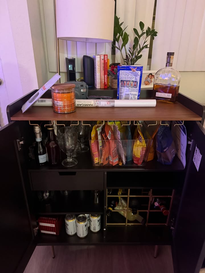 Gorgeous bar cabinet that keeps everything organized.