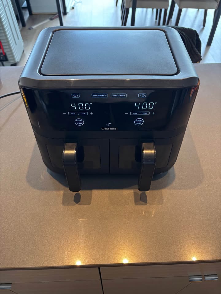 Aifryer from chefman with two compartments with total 6 quart for sale. Excellent condition, see photos.