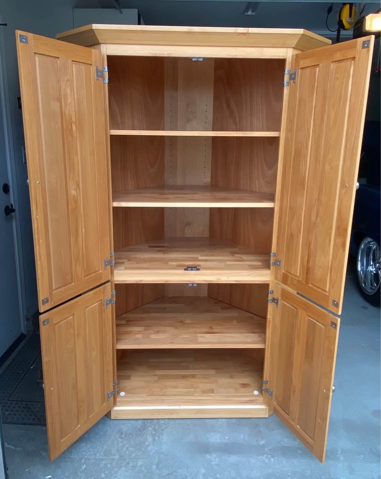 6 foot tall. Cabinet. Fits in any corner of a wall.