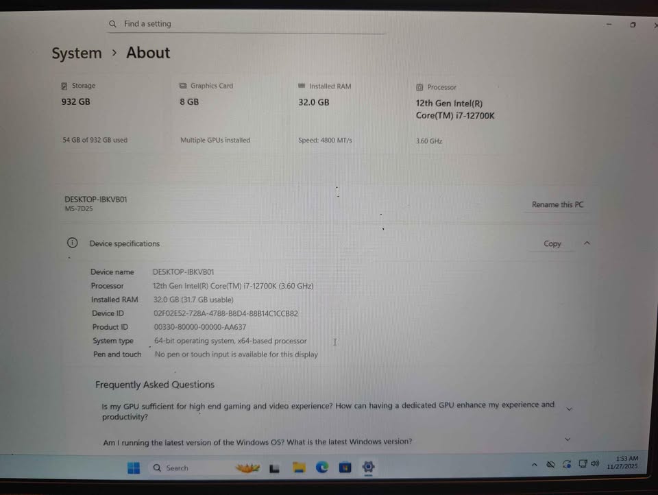 RAM: 32gb DDR5 4800mhz