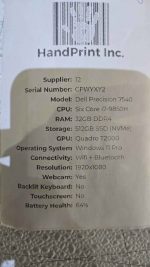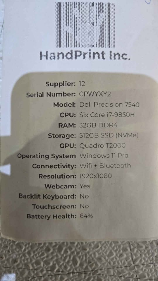 Dell Precision 7540 windows 11 pro – i7-9850H 32GB RAM 512GB SSD Quadro T2000 webcam
