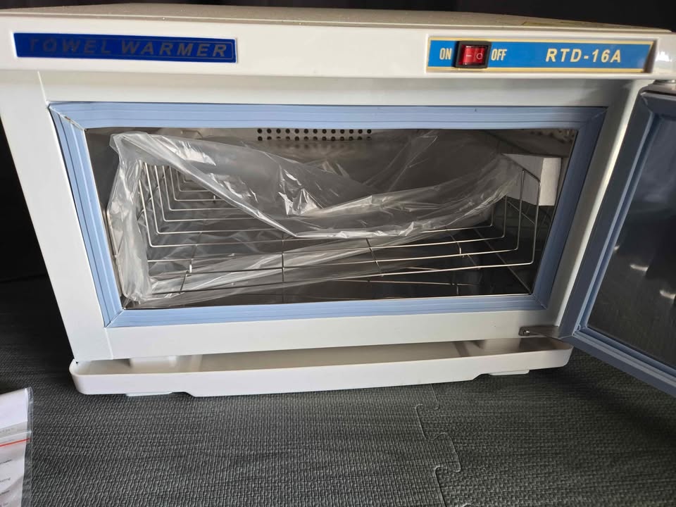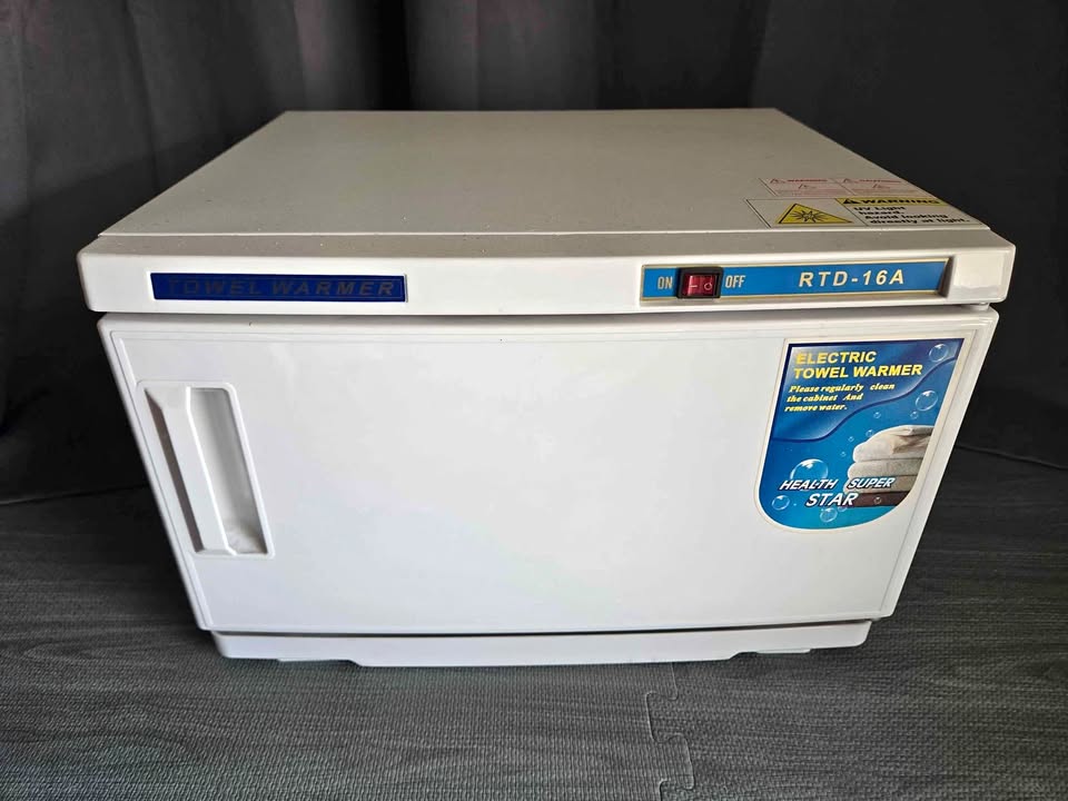 The 16A compact double level towel warmer cabinet that features a 12-24 towel capacity, push button start with auto heat control (175-185F)