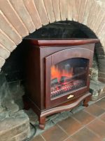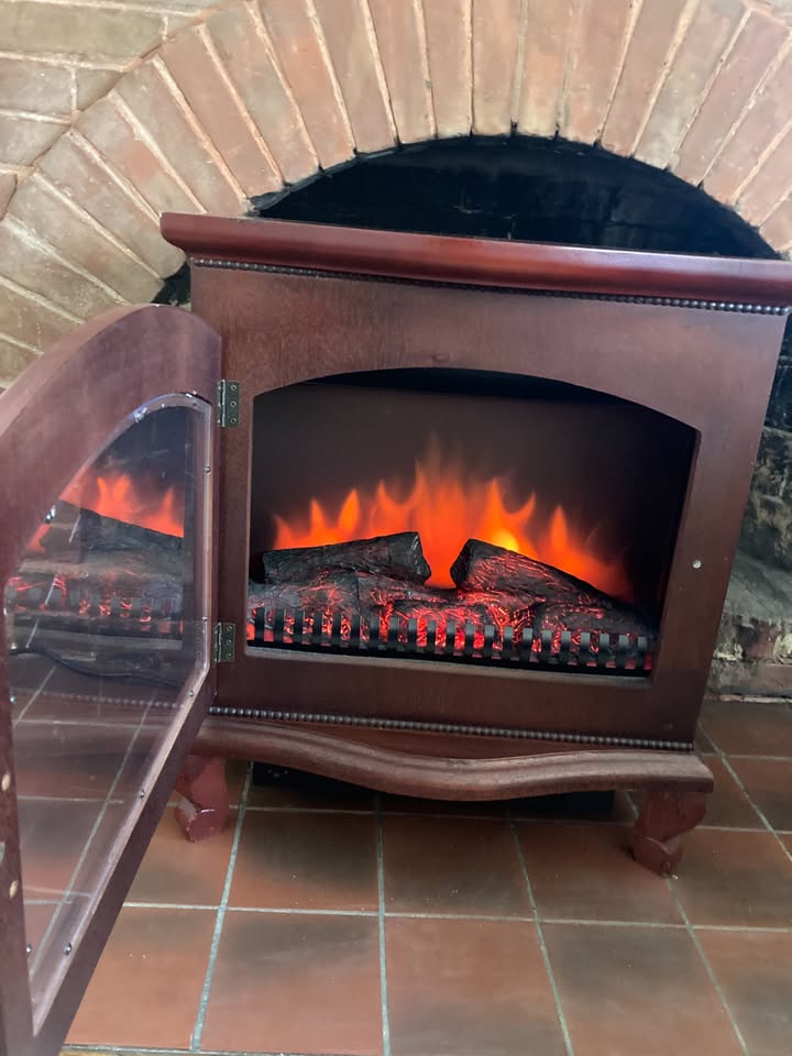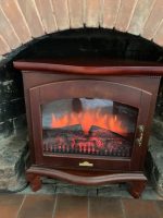 Charming “Amish” style wooden electric “wood stove” style space heater. Realistic flame/smoke display for ambiance (adjustable). Two primary heat settings (both adjustable). I love this simply for the cozy glow it provides at night in an inoperable fireplace. Much different than the metal alternative heaters, an entire step above. Moving soon and will very much miss having this wonderful item.
