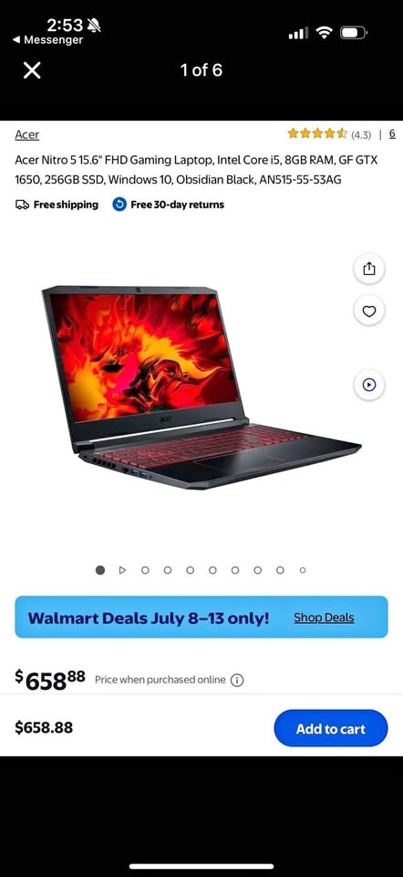 Acer Nitro 5 15.6″ FHD Gaming Laptop, Intel Core i5, 8GB RAM, GF GTX 1650, 256GB SSD, Windows 10, Obsidian Black, AN515-55-53AG