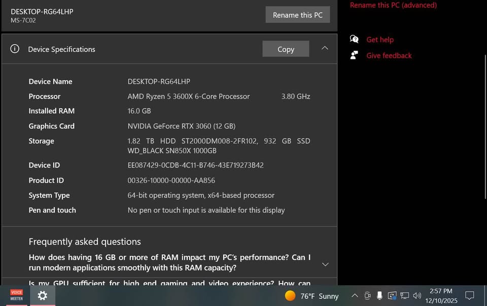 GPU: NVIDIA RTX 3060 12GB (have box)
