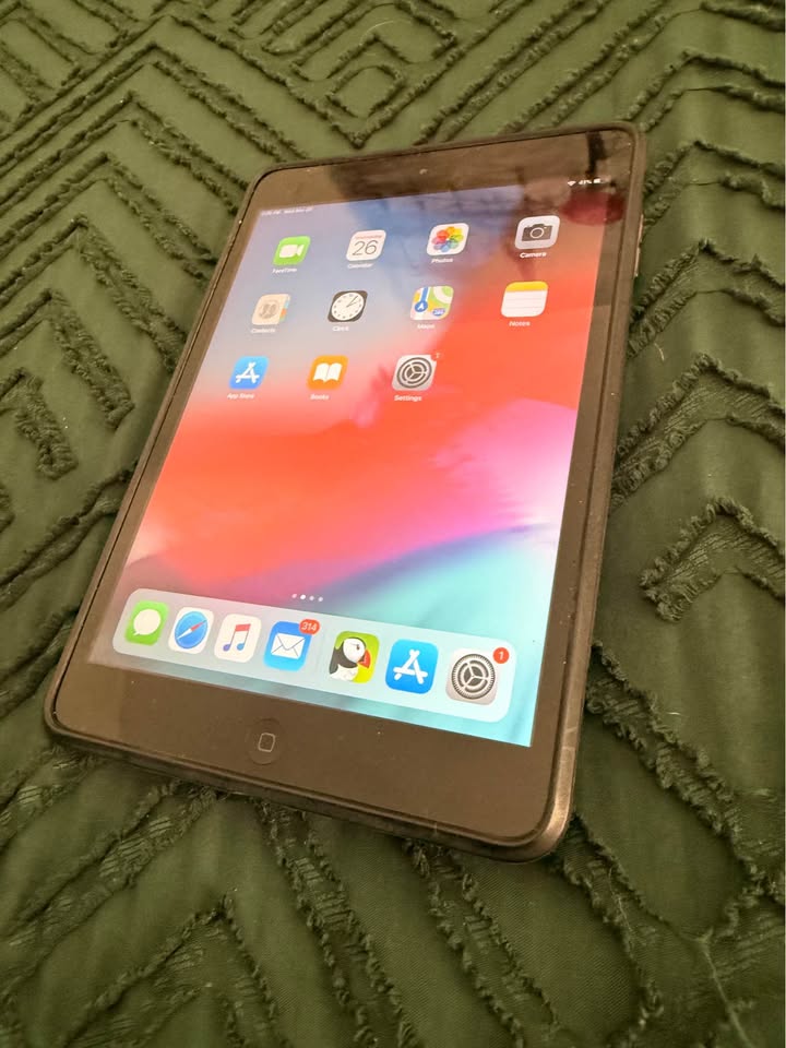 Good new condition, no cracks. Comes with charger no plug in piece.