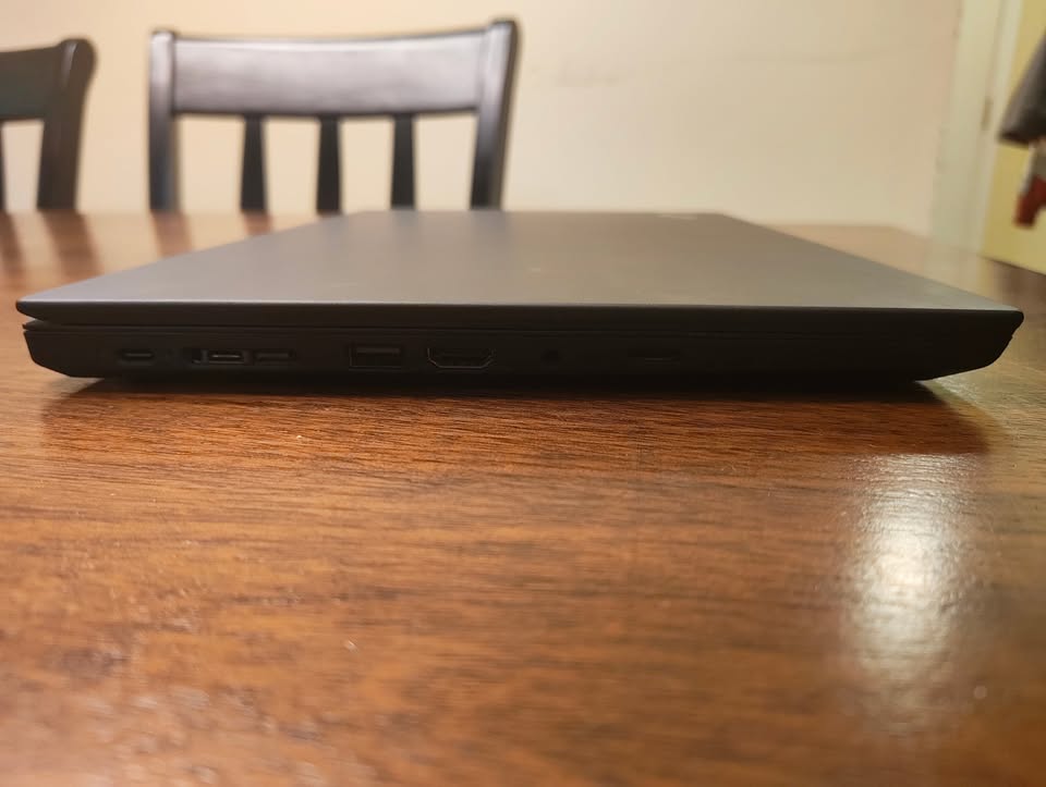 Base-spec T490 in fair condition. A few scratches and scrapes, tiny crack in the case, but still works well. Battery holds a good charge, factory reset with Windows 11.