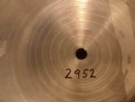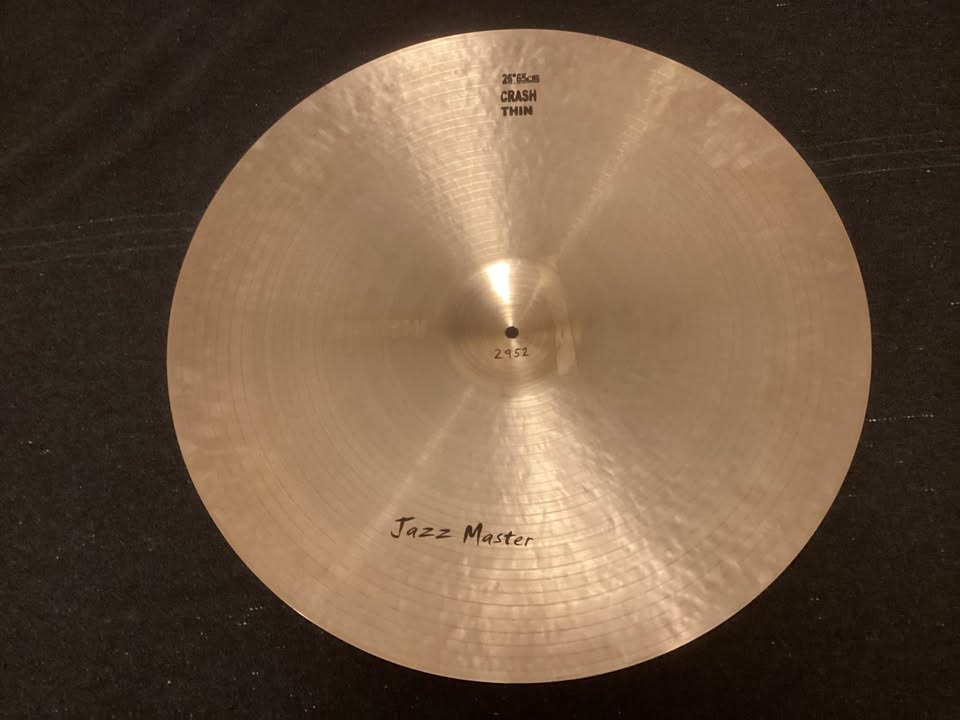 For sale is an enormous 26” Masterwork Jazz Master cymbal, handmade in Istanbul, Turkey. It’s labeled a Thin Crash, but works as a light ride. 2952 grams. Despite its size, it’s very controllable and smooth as a ride, while still being huge as a crash.