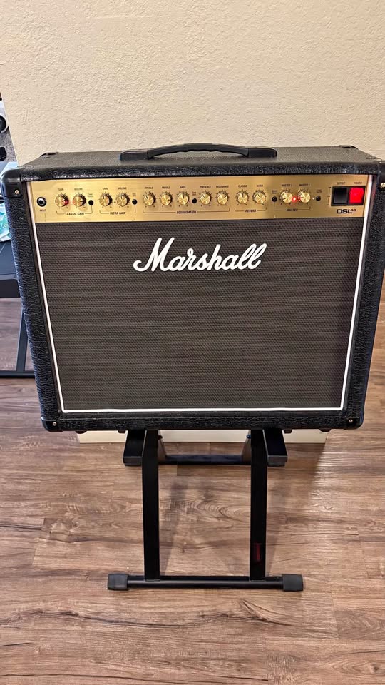 DSL40 Tube Guitar Combo Amp in great condition. Boasting 40 watts of all-tube power through a 12″ Celestion speaker, it delivers rich cleans and classic overdrive. With two channels, digital reverb, and versatile EQ controls, it’s perfect for gigging and studio sessions alike. Reliable and powerful, the DSL40 offers superb tone and flexibility for guitarists who demand quality. Don’t miss this opportunity to own iconic Marshall sound.