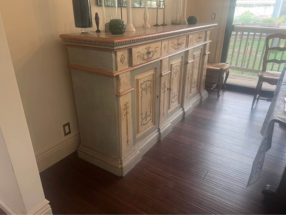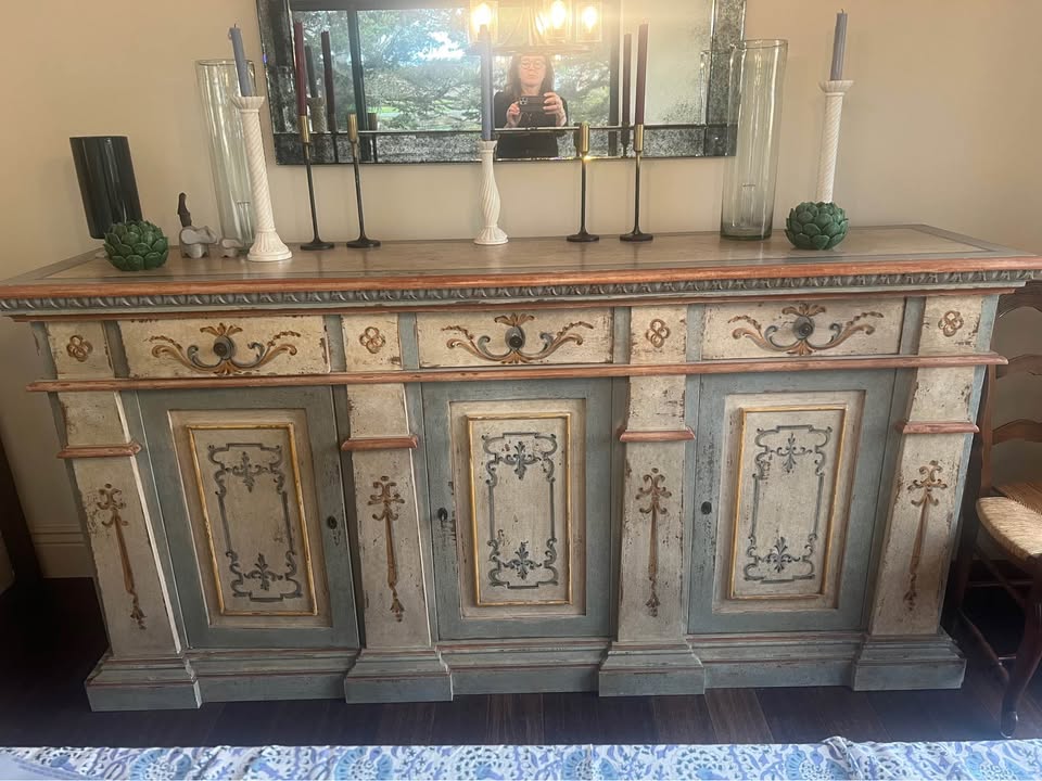 Perfect for Holiday entertaining! Gorgeous solid wood, hand-painted vintage credenza.