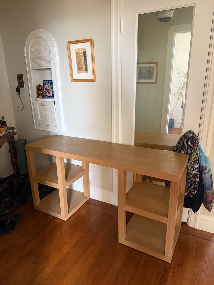 Real wood. Dimensions: W18 L60 H30. Barely used.