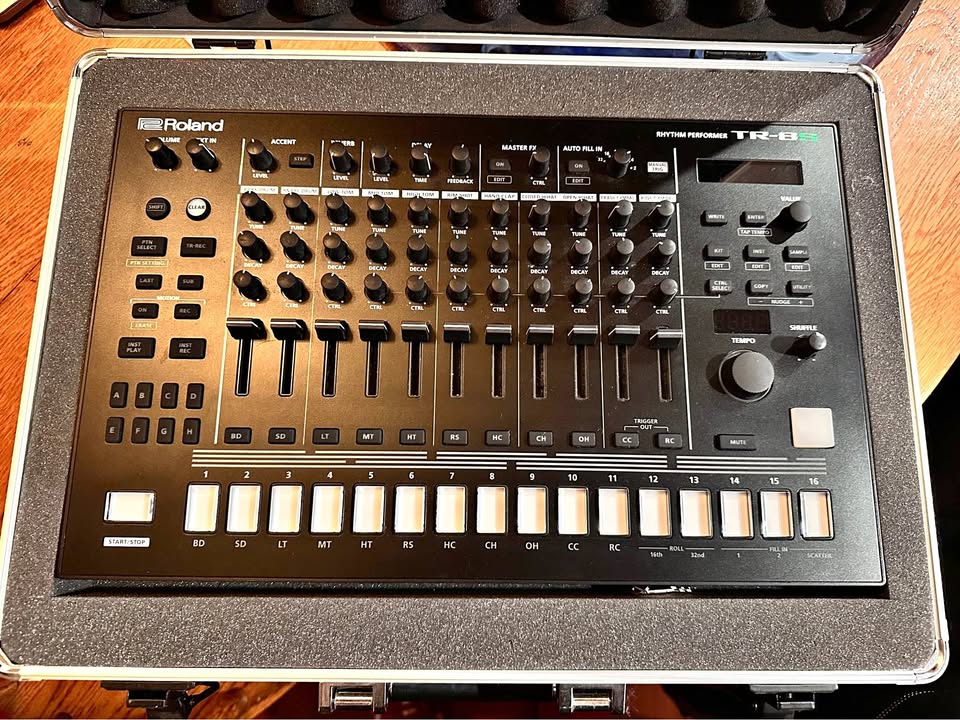 Roland TR-8s with an awesome Analog hard case and a Deck Saver cover made specifically for the unit. This thing changed my life, but I’ve moved on from it and want it to get a good home. I bought it used in perfect condition from Control Voltage in 2022. Lightly used in a smoke free studio with cover kept on. It basically has every Roland drum machine rolled into one plus a ton more and the ability to add your own samples. Original box and power supply included.