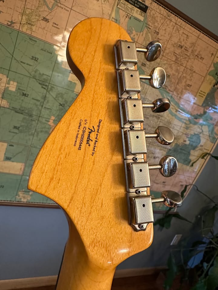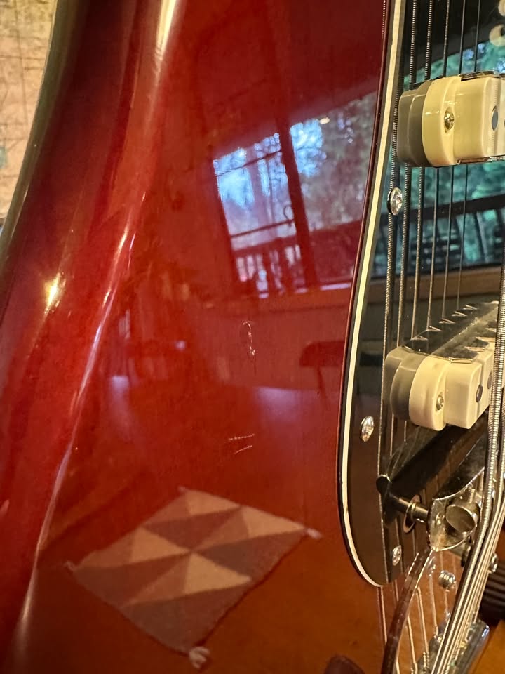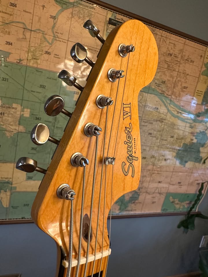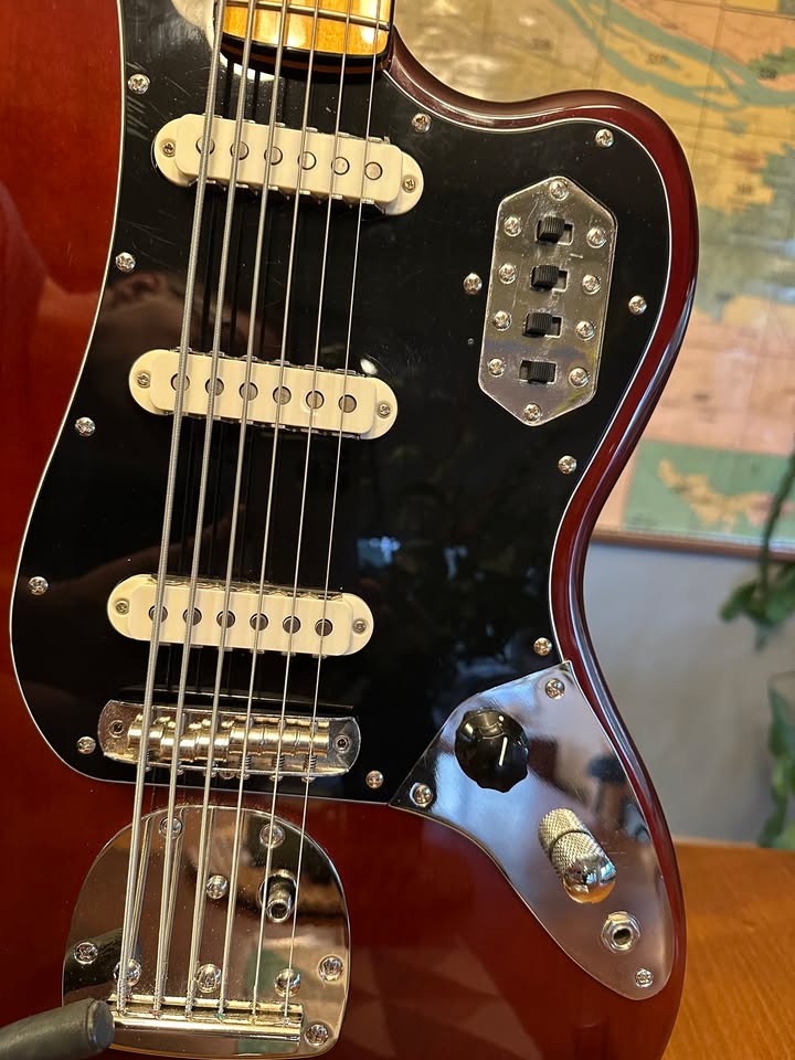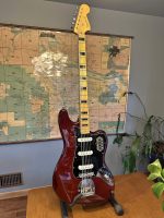 Selling my Squire Classic Vibe BASS VI. This was a custom color from Chicago Music Exchange (mahogany I think?). Plays fantastic, sounds great. I changed out the tone control with a Fender 250k no-load pot, giving it a slightly smoother high end than what came stock. Also put on 024-1.00 strings. There are a couple of small dings on the finish, difficult to photo. It plays and sounds great and quickly became my favorite instrument – so much so I bought a Fender custom shop one!
