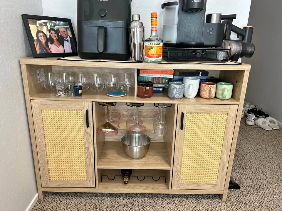 Wooden bar cabinet with storage space,47.25 “ W 34.5 “ L 14 “ Depth