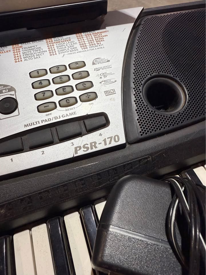 Yamaha PSR-170 Electric Keyboard, used but in great shape. This has lived most of its life in a box in a storage unit. The box and manual are a little beat up but the keyboard functions perfectly. Comes with a stand. Thanks!